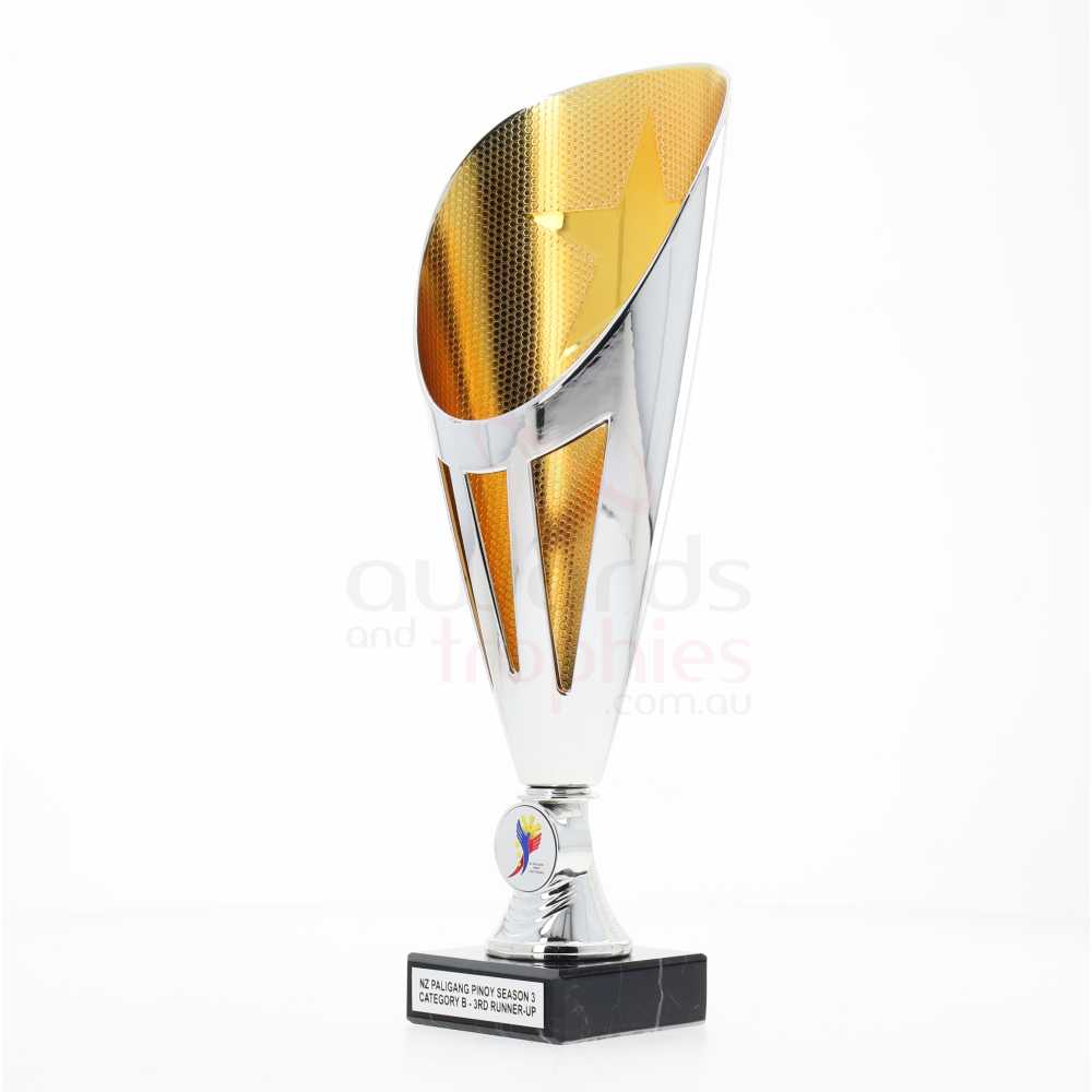 These plastic cups on a marble base offer an affordable way to recognise achievements at any event. The unique cutout design reveals a coloured interior, adding a touch of flair to your presentation. Personalisation is included to make each award truly special.