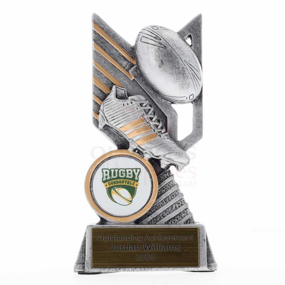 Introducing the Rogue series of resin rugby trophies, perfect for recognising exceptional performance and team victories. These trophies feature an antique silver finish with striking gold accents, embodying the spirit of triumph. Available in three sizes—115mm, 130mm, and 150mm—each trophy offers personalisation to make it truly unique. Designed with a sleek, inspiring style, they honour remarkable achievements without stretching your budget.