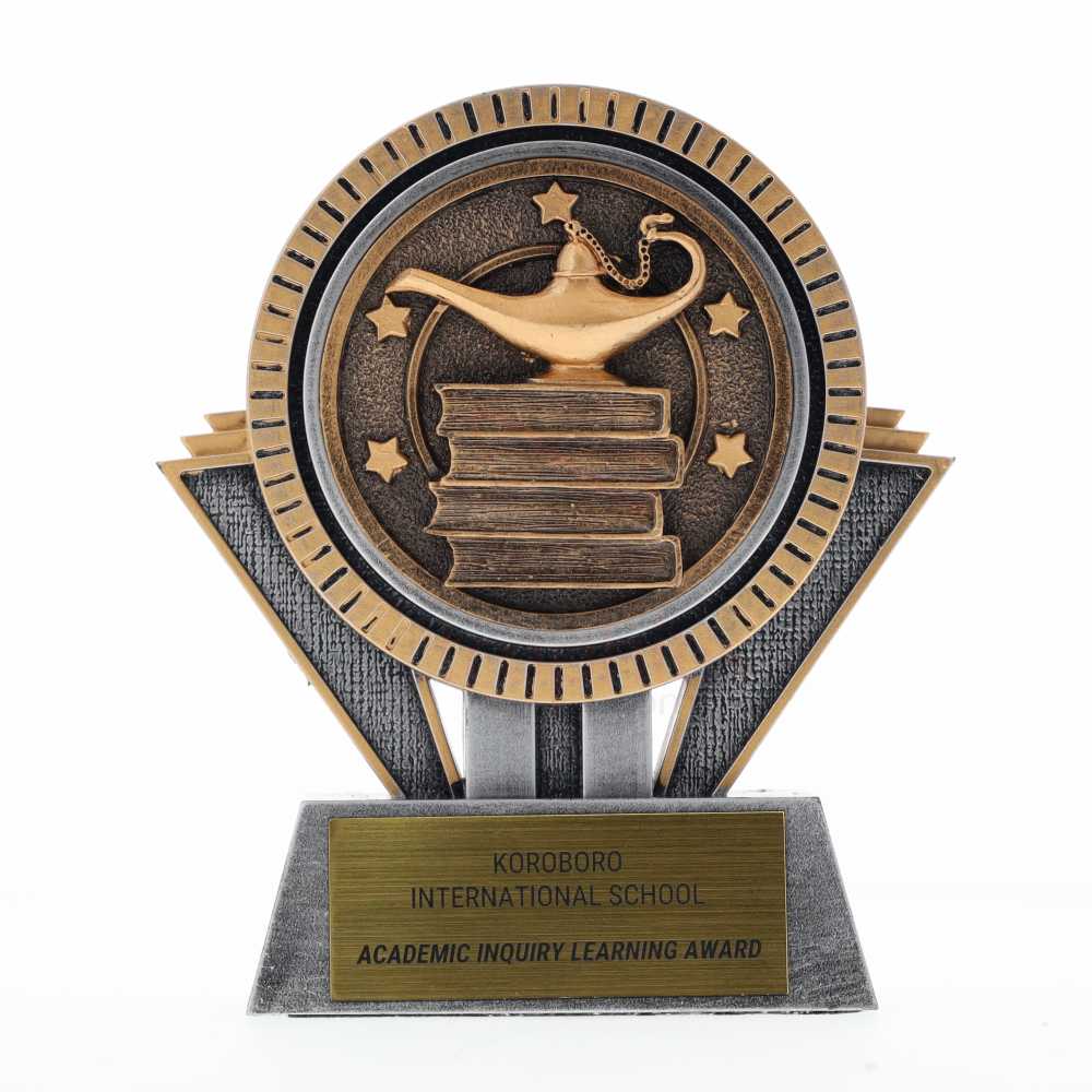 This resin trophy, featuring an academic theme, showcases an antique silver finish with gold accents for a striking appearance. Part of the Spartan Series, it offers 25 different sports and hobby designs, each available in three sizes. Ideal for recognising achievements at your next event, it's a versatile choice for team members or top performers. Personalisation is included, ensuring each award is unique and special.